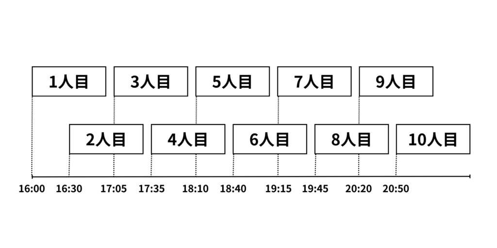 2対1の授業でも同時に授業が始まるのではなく、タイミングをずらして授業がスタートします。